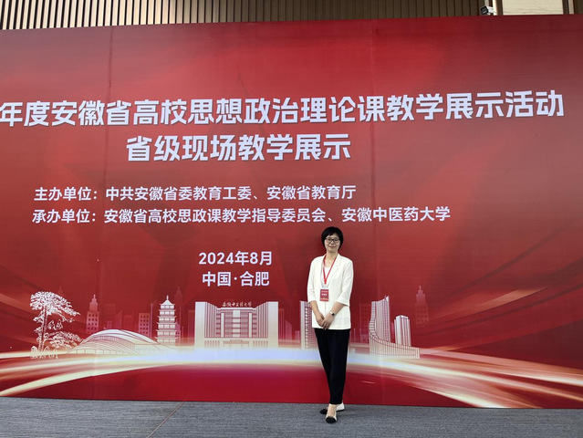 8月7日至8日,由中共安徽省委教育工委、安徽省教育厅主办,安徽省高校思政课教学指导委员会、安徽中医药大学承办的2024年度全省高校思政课教学展示活动省级现场教学展示在合肥举行。我校马克思主义学院教师胡彩林荣获本科组一等奖,这是我校思政课教师参加教学比赛以来取得的最好成绩。
