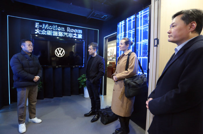 代表团参观了新能源汽车之旅E-Motion Room、精益培训中心以及智能制造产教融合实训中心,深入了解了大众学院教学及行业培训的创新模式。代表团一行与2024 级全体学生及部分 2023 级学生展开了亲切交流。学生们踊跃发言,积极分享所学所感,对话中满是对投身于未来移动出行产业的热切向往。