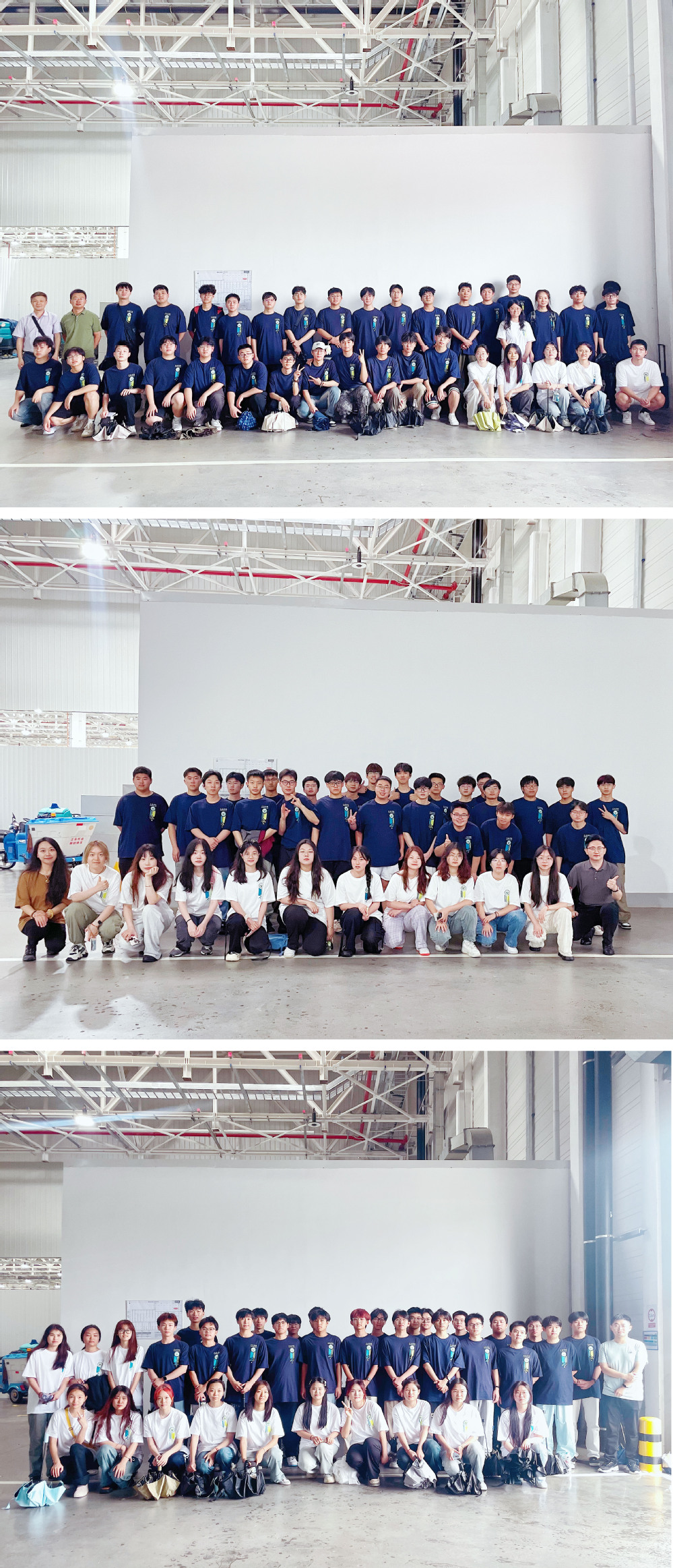 步入生产车间,学生们即刻沉浸于一片秩序井然、技术碰撞的工业环境中。高度自动化的生产线与精益求精的工艺流程相互辉映,凸显出大众汽车在智能制造领域的卓越地位与不懈追求。机器人协同作业的精准高效,不仅提升了生产效率,更展现了工业4.0时代下智能制造和智能网联风采。冲压车间的巨大机械手臂转动自如,焊接车间的激光焊点平滑细腻,涂装车间的色彩魔法让人目不暇接,总装车间的精细装配更是彰显了大众汽车人的工匠精神。在亲历生产现场的过程中,学生们表示,自己深刻领悟到了科技创新与传统制造工艺的完美融合,以及规模化生产背后所蕴含的精细化管理哲学。