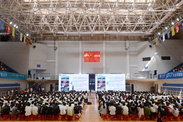 9月23日下午,大众学院在体育馆举办2024-2025学年“双元制”专业招生宣讲会,吸引了近三千名理工类专业新生到场聆听。