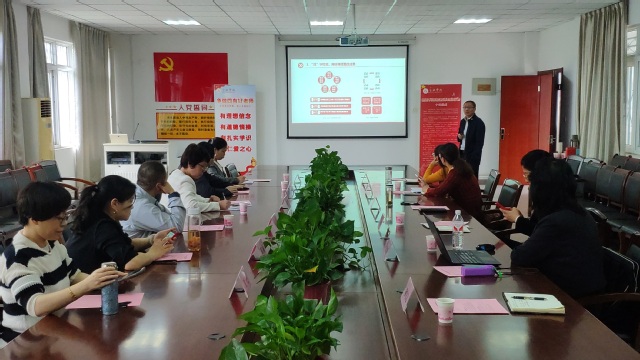 交流会上,储昭辉首先对陆艳一行来学院考察交流表示热烈欢迎,然后通过PPT详细介绍了学院党建工作情况及特色做法。学院教工第一党支部书记洪婧介绍了星级党支部建设、“双带头人”党支部书记工作室建设情况。双方还围绕党建品牌创建、党建引领发展等工作进行了深入交流。