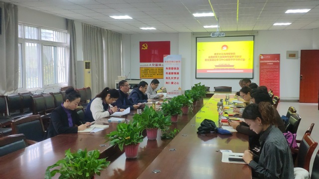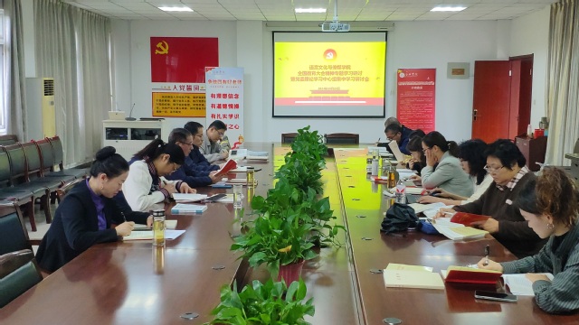 10月22日,语言文化与传媒学院党委理论学习中心组在学院大会议室举行学习会,专题学习习近平总书记考察安徽重要讲话精神和全国教育大会精神,学院领导班子成员、党委委员、纪委委员、科级干部及各党支部书记、系(中心)主任参加,会议由院党委书记储昭辉主持。