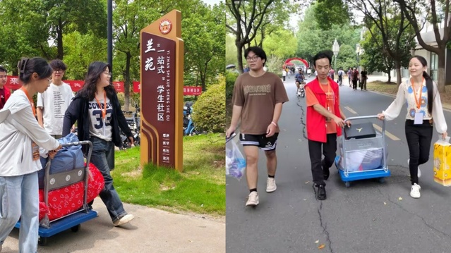 在迎新现场,党员志愿者们坚守大门第一站,化身“红马甲”,以饱满的热情为和贴心的服务迎接来自各地的新生们,他们帮助新生搬运行李,主动与新生和家长面对面交流,介绍学校的各处设施,解答新生的入学困惑。