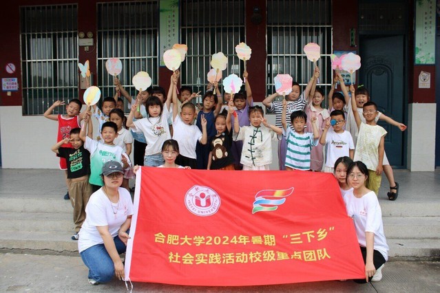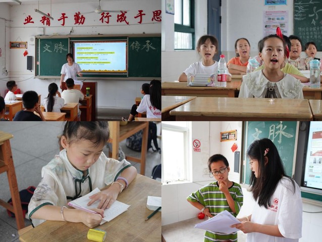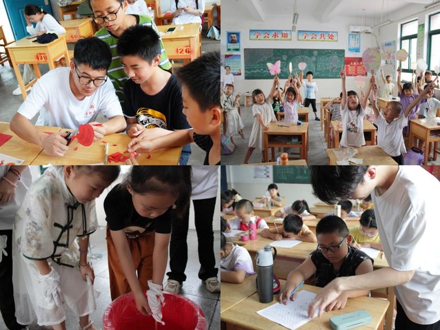 下午的教学活动在裕安区石板冲乡中心学校进行。为培养学生的爱国精神,提升审美能力,音乐组以爱国视频为切入点,进行了《歌唱祖国》的音乐教学。课堂上学生跟着节奏打着节拍,声声童真的旋律徜徉在课堂的每个角落。美术组老师对团扇的结构颜色等进行了简单讲解后,小朋友们便迫不及待地拿起画笔,开始在纸上描绘自己心中的团扇。为让学生在动手中体会中华优秀传统文化的魅力,文艺组组织开展了“‘漆’彩纷呈,‘扇’染夏色”课堂活动。队员们先为制作漆扇示范步骤,孩子们很快就掌握了基本方法,带好手套跃跃欲试。一把把白色的扇子,浸入漂漆中,同学们切身感受了一次色彩流动的美学。漆扇特色课堂开展取得了不错的反响,队员们和孩子们积极交流,相处融洽,呈现出一幅幅充满童趣与活力的作品。