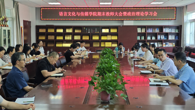 7月1日下午,语言文化与传媒学院在五栋二楼大会议室召开全体教师大会暨政治理论学习会,学院领导班子成员及全体教职工参加会议。