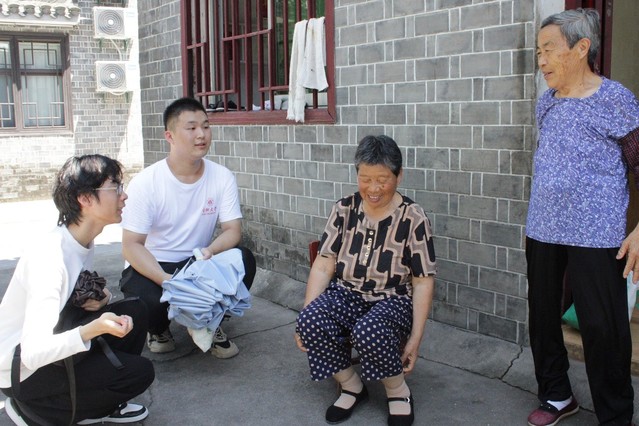 图为调研组成员在独山镇红军街与村民访谈。张欣悦 供图