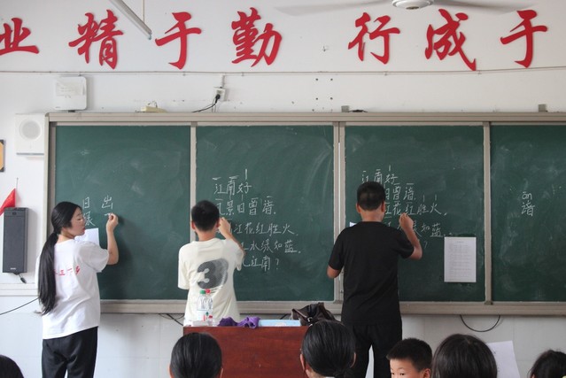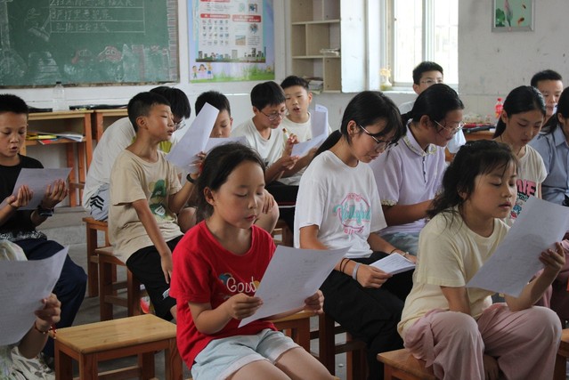 教学组将专业所学转化为通俗易懂的课程内容,通过古诗吟诵激活乡村文化课堂,既强化了青少年的文化自信,也以实际行动践行了语言文化与传媒学院学子服务乡村振兴的责任担当。琅琅吟诵声回荡在盛夏的校园,为石板冲乡的孩子们播下了一颗传承千年诗心的种子。