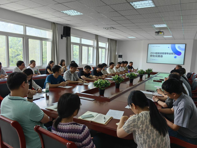 2024年9月7日下午,旅游与会展学院2024级专业硕士研究生入学教育暨师生见面会在旅游与会展学院226会议室顺利举行。旅游与会展学院党委书记黄雄英、院长宋玉军、副院长郑嬗婷、多位硕士研究生导师、研究生秘书、研究生辅导员以及2024级全体研究生参加了本次见面会。