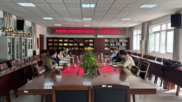 2025年10月31日上午,黄山学院教务处处长金声琅率旅游学院会展经济与管理教研室主任赵蕾、副主任于君、骨干教师丁南,赴我院围绕2026级人才培养方案修订、课程改革、实习模式优化等开展调研。我校教务处副处长项响琴、学院副院长张体云、会展经济与管理系主任高飞、旅游管理系主任张业臣出席座谈。