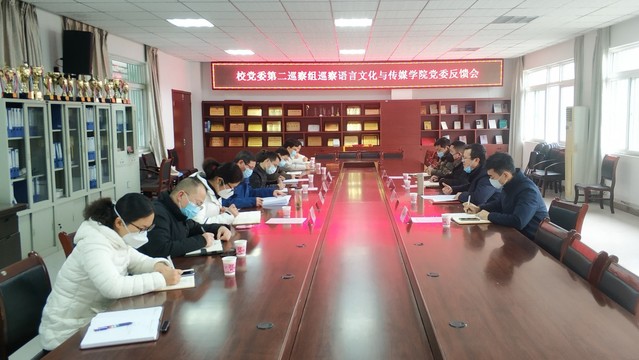 会上,丁增云宣读了《关于巡察语言文化与传媒学院党委的反馈意见》,从专业建设、教科研建设、基层党组织建设等方面肯定了学院在履行党委主体责任和立德树人根本任务上取得的成绩,同时围绕贯彻落实党的路线方针政策和党中央、省委重大决策部署及学校重要决定、全面从严治党战略部署、落实新时代党的组织路线,推动省委巡视、审计监督及“不忘初心、牢记使命”主题教育检视等方面,深刻指出了巡察中发现的问题,提出了整改的意见建议。一是要增强领导班子成员之间的配合与协调,进一步提高班子凝聚力和号召力;二是领导干部要充分发挥主观能动性,进一步增强解决难题的工作魄力。