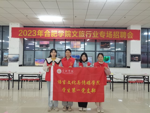 2023316日星期四下午,语言文化与传媒学院学生第一党支部的学生党员们来到了图书馆招聘厅,为2023年合肥学院文旅行业专场招聘会进行志愿服务活动。