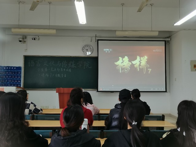 2023326日上午九点,语言文化与传媒学院学生第一党支部于善思楼C306教室组织全体学生党员收看《榜样》7专题节目。
