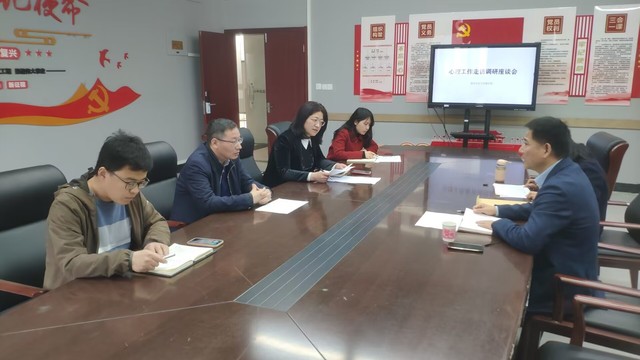 3月28日下午,学生处副处长陶龙泽、校心理健康教育中心主任谢琛来到语言文化与传媒学院调研心理健康教育工作,院党委书记储昭辉、党委副书记张爱萍、全体专职辅导员参加了本次活会议。