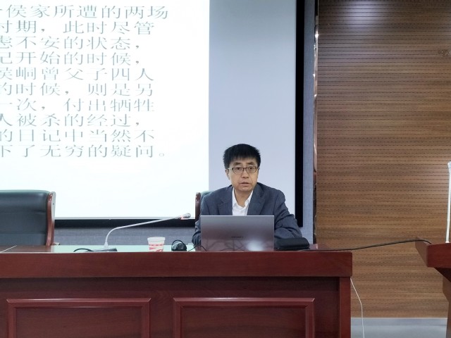 接下来,周绚隆以《侯岐曾日记》为中心开始了本次讲座。《侯岐曾日记》以私人的视角叙述历史,对补充历史细节、还原历史现场、弥补正史记载的不足等方面弥足珍贵,具有重要的文献价值。周绚隆围绕《侯岐曾日记》中提到的侯氏家族多个人物的命运展开详细讲述,反映明末清初局势变化对家庭亲情和社会环境造成的重大冲击,展现出侯氏家族在面对历史跌宕中的时代命运。周绚隆认为,日记作为私人文献为微观史学研究提供了可能,与宏观史学形成互补。
