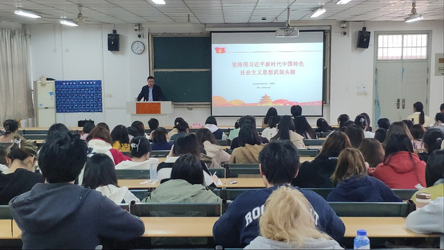 425日中午,语言文化与传媒学院2023年入党积极分子培训班第一次理论授课在善思楼C101教室举行,本次党课由学院党委书记储昭辉讲授,题目为《坚持用习近平新时代中国特色社会主义思想武装头脑》,本期入党积极分子培训班全体学员参加。