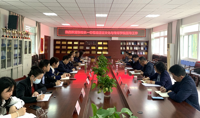 5月11日,副校长张思扬赴语言文化与传媒学院调研指导工作。财务处处长缪群道,后勤集团总经理叶道全,校园建设与管理处处长吴世勇,国有资产管理处副处长(主持工作)张惠等陪同调研。语言文化与传媒学院领导班子以及办公室主任、学工办主任、实验室主任等参加调研,教育学院领导班子、办公室主任一同参加座谈。