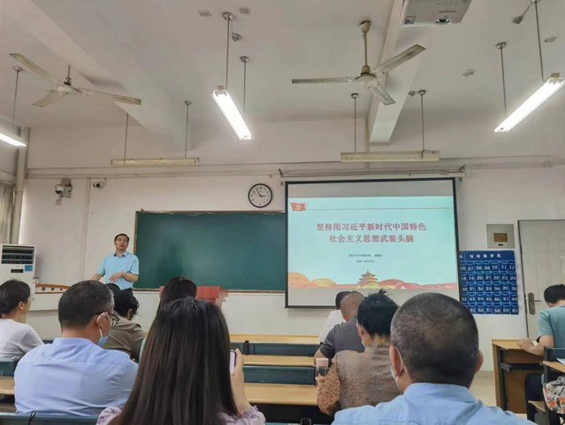 516日下午,文传学院教工第一支部在院会议室召开支部大会,围绕习近平新时代中国特色社会主义思想进行主题教育理论研讨。