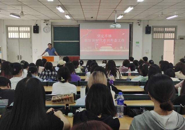 523日下午,语言文化与传媒学院2023年入党积极分子培训班第三次理论授课在一区善思楼A101教室举行。本次党课由校党委委员、宣传(统战)部部长贾峰主讲,题目为“坚定不移做好新时代意识形态工作”,我院及旅游与会展学院本期入党积极分子培训班学员参加,党课由语言文化与传媒学院党委书记储昭辉主持。
