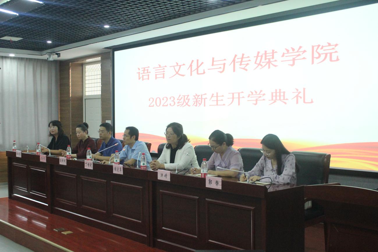9月15日上午11点,语言文化与传媒学院23级新生开学典礼在一区博学楼C座报告厅隆重召开。此次开学典礼由语言文化与传媒学院学工办主任顾盼盼主持,语言文化与传媒学院院长丁增武、语言文化与传媒学院党委副书记张爱萍、语言文化与传媒学院副院长殷明明、分管研究生副院长查金萍、研究生负责人郭静、新闻学专业负责人张冰清、汉语言专业负责人洪婧、网络新媒体专业负责人王书川、张体云教授、林世华博士、语言文化与传媒学院党政班主任郭文涛、学院教学办主任章衡、语言文化与传媒学院团委副书记刘政、学生第二党支部书记柳守志出席,2023级全体本科、研究生新生参加。