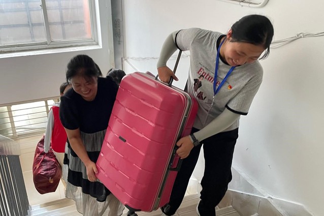 迎新现场, 支部党员们穿着整齐的志愿者服装,统一佩戴党员徽章,以温暖的微笑、耐心的言语、贴心的服务迎接来自全国各地的新生。党员们主动接过沉甸甸的行李,引导新生前往接待现场,耐心解答疑惑,为新生提供了热情周到的服务,以“心”迎新,用实际行动充分诠释了党员的初心和使命,彰显了党员的责任和担当。