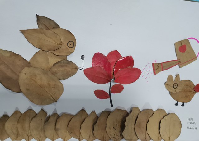 同学们积极踊跃的报名活动,在活动中充分发挥想象力,采集五彩缤纷的秋叶进行美的再创作,通过自己的设计与实践创造了一幅幅独具创意的作品,将自己眼中秋日的多彩画卷呈现于纸上。制作出来的贴画作品,主题突出、形式新颖、风格鲜明,每一幅都透露着学生们独特的创意、审美和对大自然的热爱。