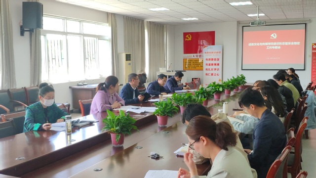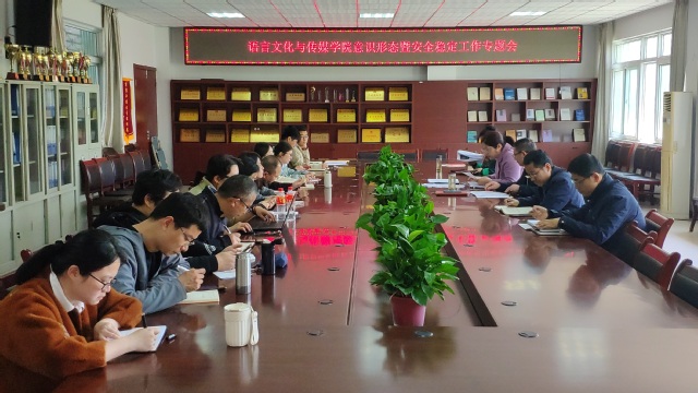4月9日上午,语言文化与传媒学院在学院大会议室召开意识形态暨安全稳定工作专题会,学院领导班子成员、党委委员、纪委委员、科级干部、各党支部书记、系(中心)主任及研究生、本科生辅导员参加会议,会议由院党委书记储昭辉主持。