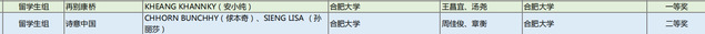近日,由教育部、国家语委主办的第六届中华经典诵写讲大赛“诵读中国”经典诵读大赛安徽省预选赛已完成全部赛程,本次大赛旨在贯彻落实党的二十大精神,推动国家通用语言文字的推广,传承发展中华优秀语言文化。大赛吸引了全国众多学校和社会各界的积极参与,语言文化与传媒学院教师指导的作品在激烈的竞争中脱颖而出,喜获佳绩。由王昌宜老师、汤尧老师指导,KHEANG KHANNKY(安小纯)朗诵的作品《再别康桥》获得留学生组一等奖;由周佳俊老师、章衡老师指导,CHHORN BUNCHHY(俅本奇)、SIENG LISA(孙丽莎)朗诵的作品《诗意中国》获得留学生组二等奖;由陈红燕老师、洪婧老师指导,肖博文、周思慧朗诵的作品《荷花淀》获得大学生组二等奖;由周佳俊老师、崔璨老师指导,周雨欣、张瀚程朗诵的作品《等待》获得大学生组三等奖;由刘政老师、柳守志老师指导,宋梓彤、胡亦佳、卢子鑫、严欣玥、何为康朗诵的作品《大雪中的中国》获得大学生组优秀奖。