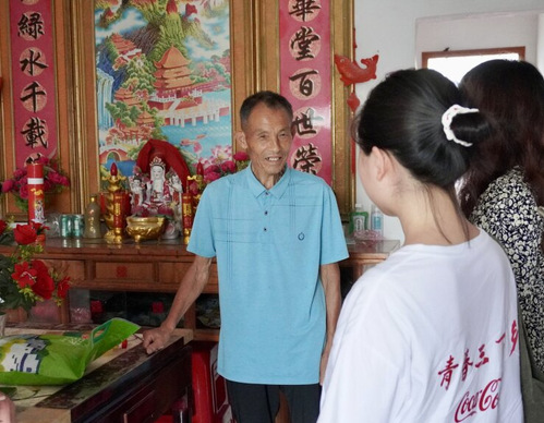 大雨之下,团队成员最后一同驱车前往邻村拜访最后一名老党员徐应宏。他同时是一名光荣的退伍军人、为村子建设发展贡献了三十年黄金岁月的村书记。团队成员同徐老先生进行了热切交流,即使老先生身体抱恙,在谈及党和人民时双眼仍炯炯有神。他向随行学生们表达了对党的崇高敬意,并嘱咐成员们要心怀理想,一心向党,不负使命。预备党员姚海峰在此行中表示,聆听了多位老党员的光荣事迹和心路历程,这更加坚定了他不忘初心、牢记使命,为实现中华民族伟大复兴的中国梦而不懈奋斗的至高理想。