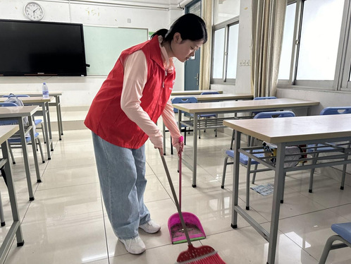 以文明润心,以行动净界——外国语学院积极开展“劳动周”清扫教室志愿活动