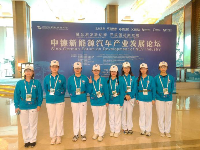 2022年9月19日至21日,世界制造业大会期间,由安徽省人民政府外事办公室主办的中德新能源汽车发展平行论坛与新能源汽车和智能网联汽车产业链对接会在合肥香格里拉酒店顺利举办。作为安徽省重要的中德教育合作示范基地,受安徽省外办、市外办与市共青团委委托,我院德语专业和英语专业的12名优秀学子参与了本次大会的相关外事服务工作。