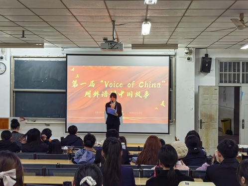 1120日晚上18:30合肥学院第一届Voice of China用外语讲中国故事决赛在一期5101教室顺利举行。本次活动特邀外国语学院副院长李洁、日语系教师鲍德裕、德语系教师李菲菲担任评委,同时设有大众评审团。
