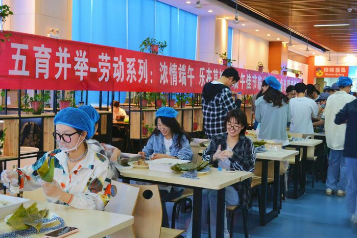 为扎实推进劳动教育,弘扬优秀传统文化,6月5日上午,学生处、团委、后勤集团在第二食堂联合举办端午主题劳动教育实践活动。