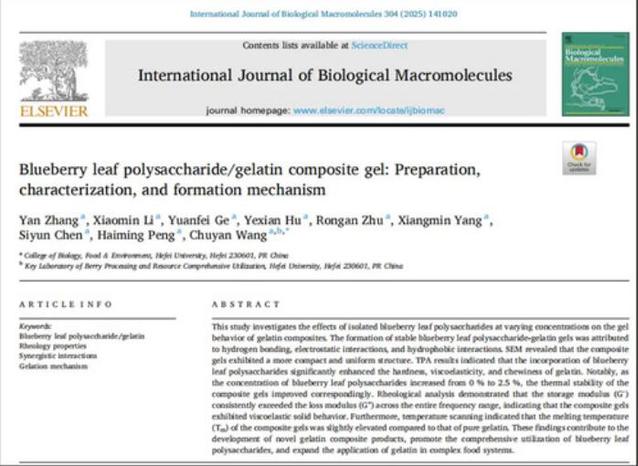 2025年2月,欧美黑人巨大videos精品_欧美黑人巨大xxxxx_欧美黑人乱大交_欧美黑人乱大交_欧美黑人牲交videossexeso_欧美黑人添添高潮a片www_欧美黑人添添高潮a片www_欧美黑人性暴力猛交喷水黑人巨大生物食品与环境学院王储炎教授课题组在International Journal of Biological Macromolecules(1区TOP,IF=7.7)发表了题为“Blueberry leaf polysaccharide/gelatin composite gel: Preparation, characterization, and formation mechanism”的论文。王储炎教授为通讯作者,硕士研究生张岩为第一作者。