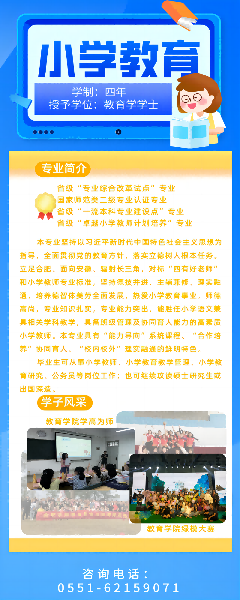 小学教育(本科 师范) 咨询电话:0551-62159071